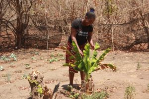 Her journey started by making a small (12X12m) plot with a food forest and a kitchen garden which she modeled after the one she saw in Shashe. She planted 9 banana trees, 13 papaya trees, 2 granadilla vines, 2 mango trees, and several lemon and orange trees in the food forest.